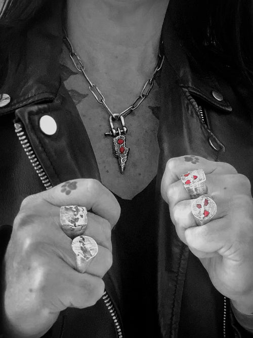 Y, como siempre, llevaré mis clásicos de cota de malla elástica, anillos con piedra, corazones con rosas, y otras locuras hechas a mano en plata.